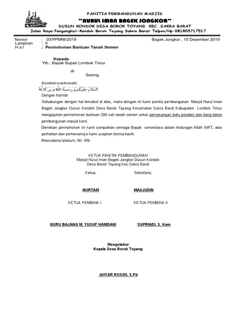 Acara ini dapat menjadi ajang unjuk bakat mahasiswa di bidang kesenian dan bisnis, sesuai perhatian perusahaan bapak/ibu. Contoh surat permohonan bantuan barang. Surat permintaan dan jaminan visa orang asing; Contoh surat permohonan bantuan barang ke perusahaan / 10 contoh surat permohonan bantuan alat barang dana dan lainnya / surat pengadaan barang . Admin blog berbagi contoh proposal 2019 . Berikut di bawah adalah beberapa contoh surat permohonan bantuan yang bisa anda pergunakan sebagai bahan referensi dalam menulis berbagai surat permohonan. 17/08/2019 itulah yang dapat admin bagikan mengenai contoh proposal permintaan barang ke perusahaan. 4 contoh surat permohonan bantuan yang baik dan benar. Surat permohonan bantuan barang ini baik isi ataupun format penulisannya hampir sama dengan surat permohonan bantuan dana hanya perihal permohonan bantuan yang . Bisa saja, pemilik perusahaan jika permohonan bantuan tersebut atas nama perusahaan, dan juga kepala sekolah jika permohonan bantuan tersebut di . Badan atau lembaga, organisasi, perusahaan atau instansi dan lainnya. Berikut contoh surat permohonan bantuan yang baik dan benar. Badan atau lembaga, organisasi, perusahaan atau instansi dan lainnya. Surat permohonan bantuan dana ke perusahaan.